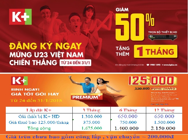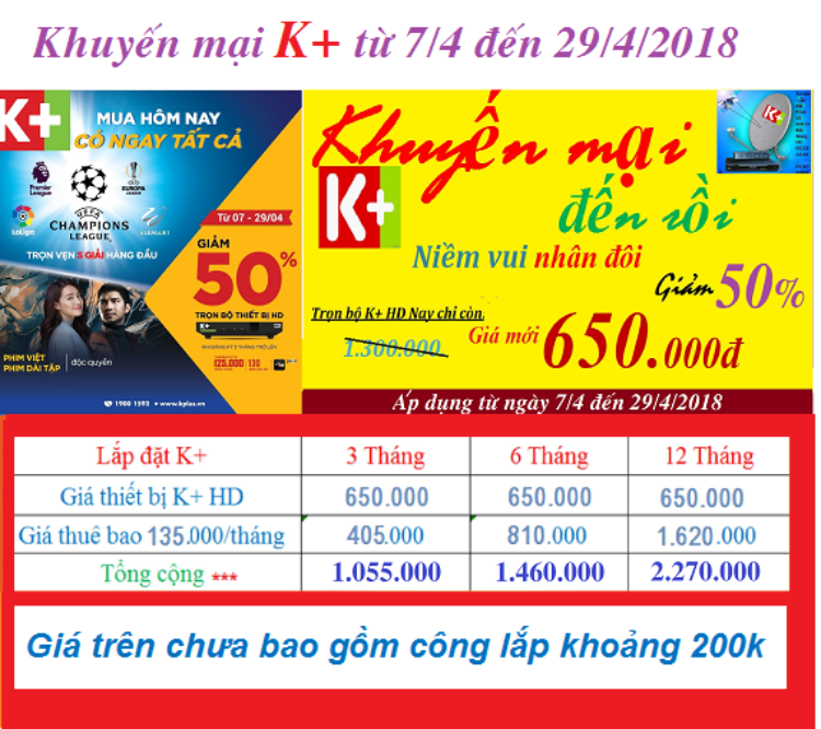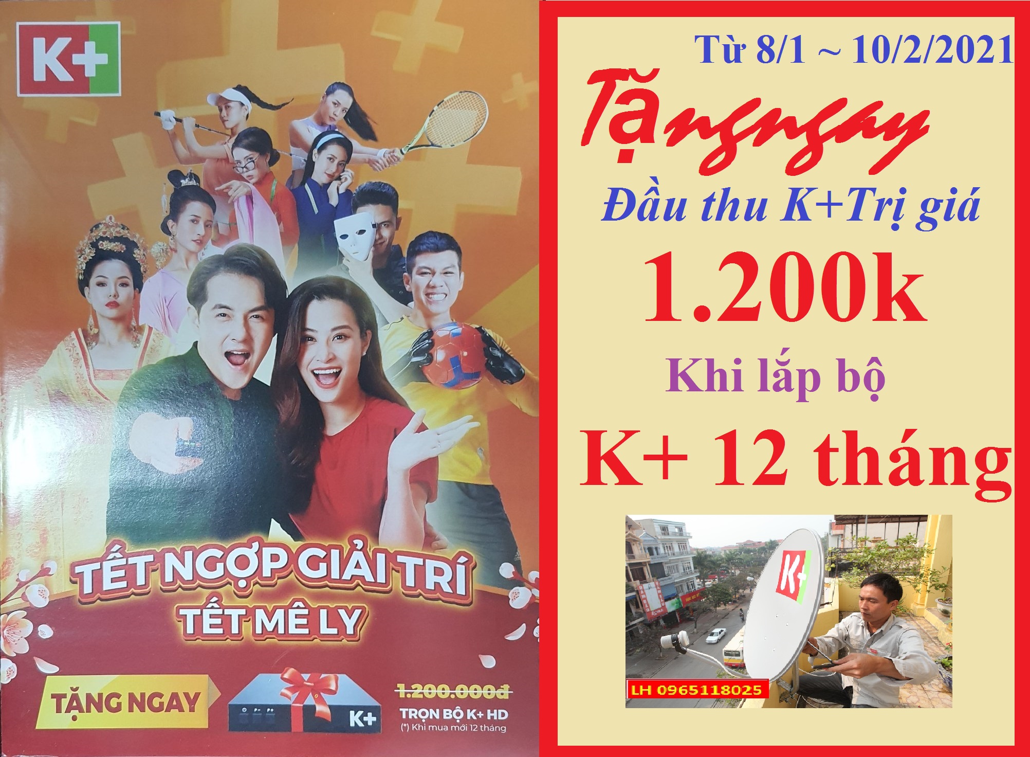 2/-Nội dung khuyến mãi: Tặng Miễn phí trọn bộ thiết bị đầu K+ trị giá 1.200.000đ Khi đăng ký mới thời hạn 12 tháng trở lên